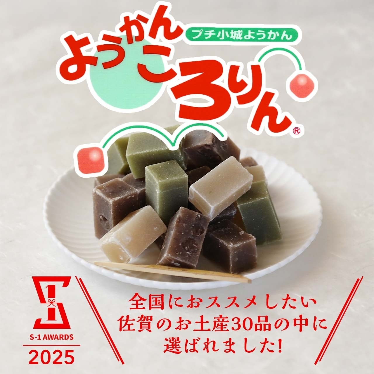 ひとくちサイズにカットした、白練・抹茶・小倉の小城羊羹が3種類がランダムに入っています。