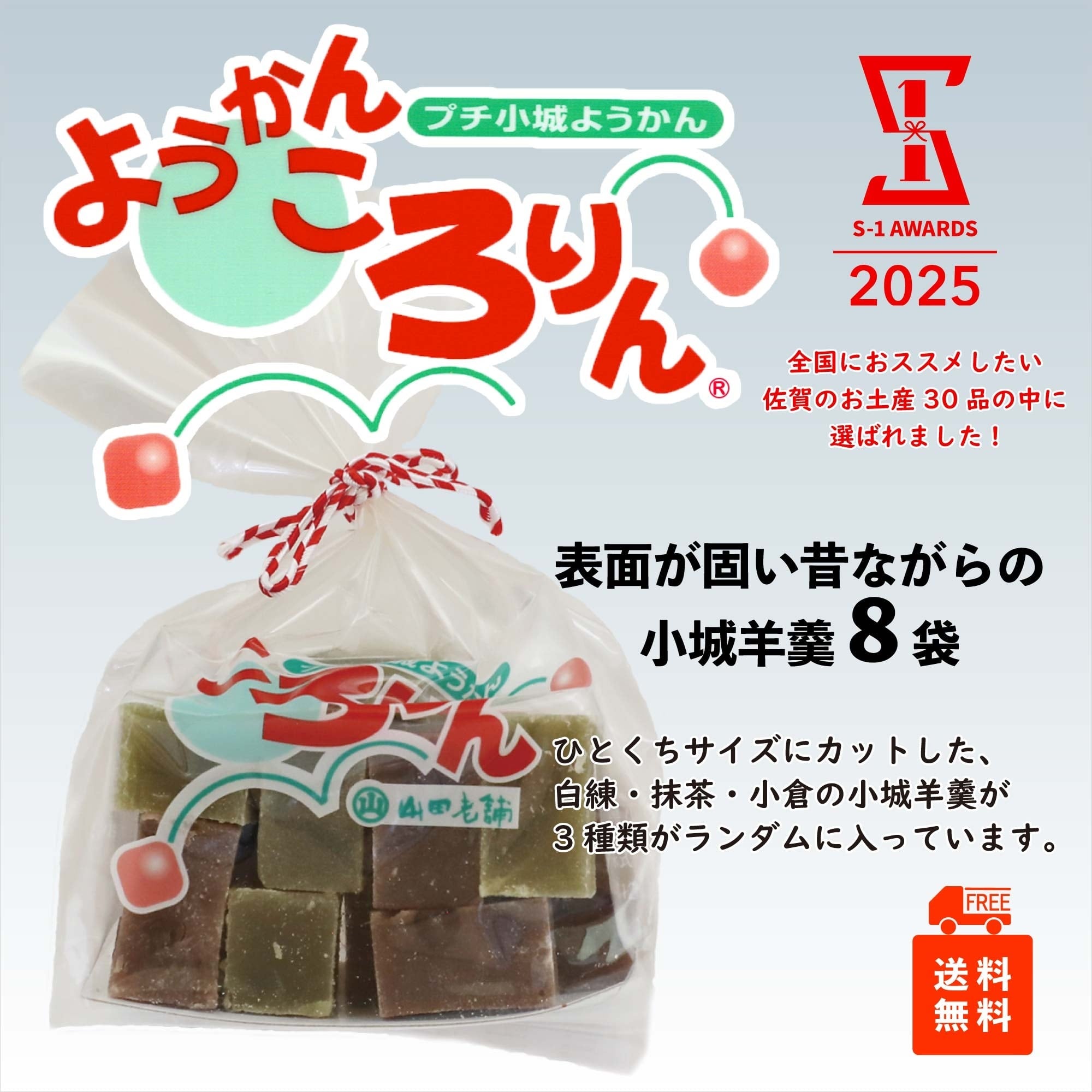 ひとくちサイズにカットした、白練・抹茶・小倉の小城羊羹が3種類がランダムに入っています。